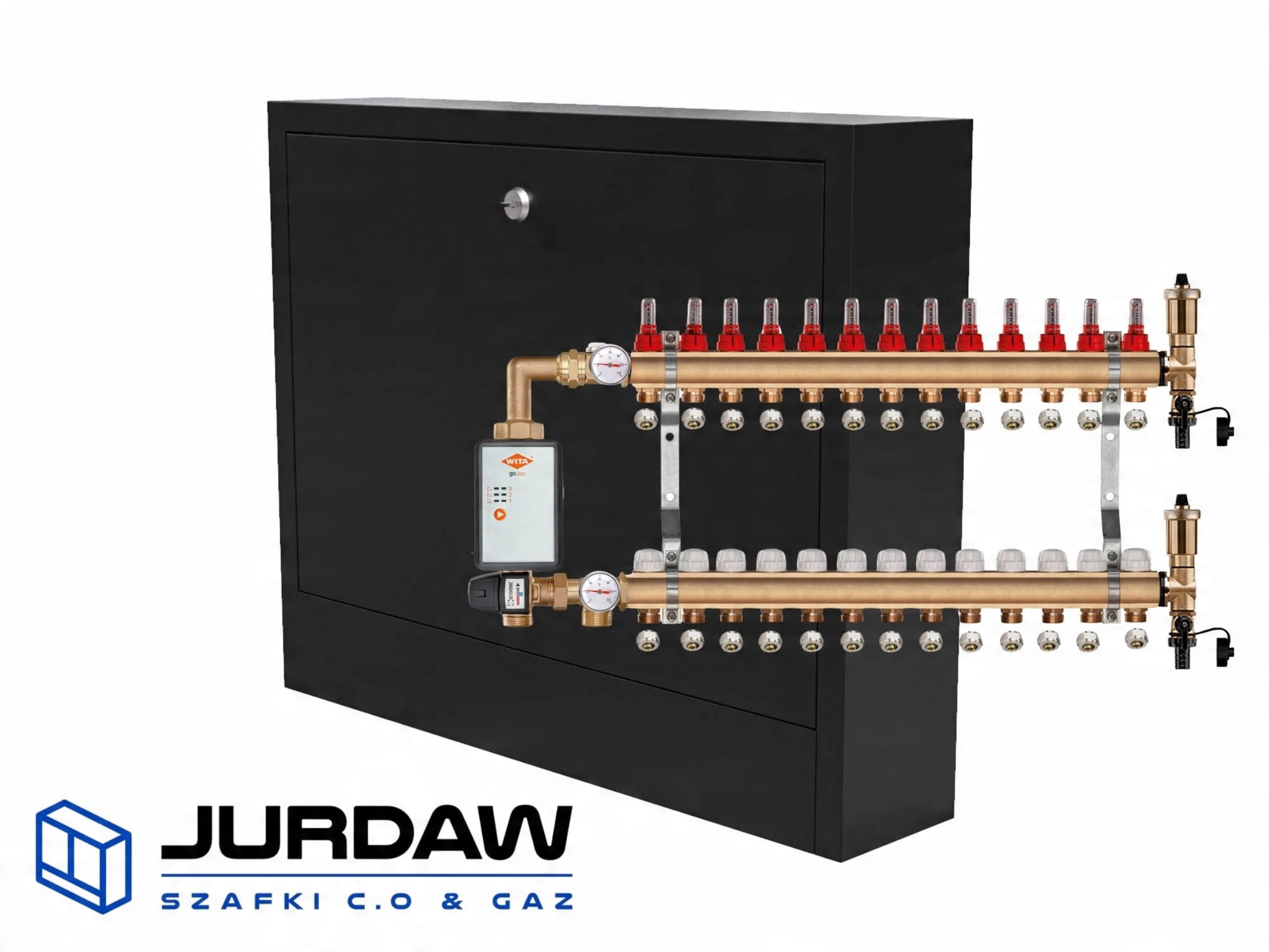 KOMPLETNY ROZDZIELACZ MOSIĘŻNY 13 SEKCJE Z GRUPĄ POMPOWĄ WITA GO.TEC 60 + ZŁĄCZKI PEX + SKRZYNKA PODTYNKOWA - POLSKI PRODUCENT