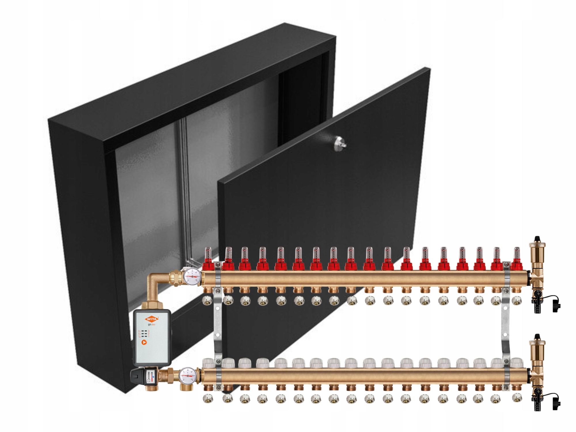 ROZDZIELACZ MOSIĘŻNY PODŁOGÓWKI 18+POMPA WITA+SKRZYNKA NATYNKOWA CZARNA+PEX
