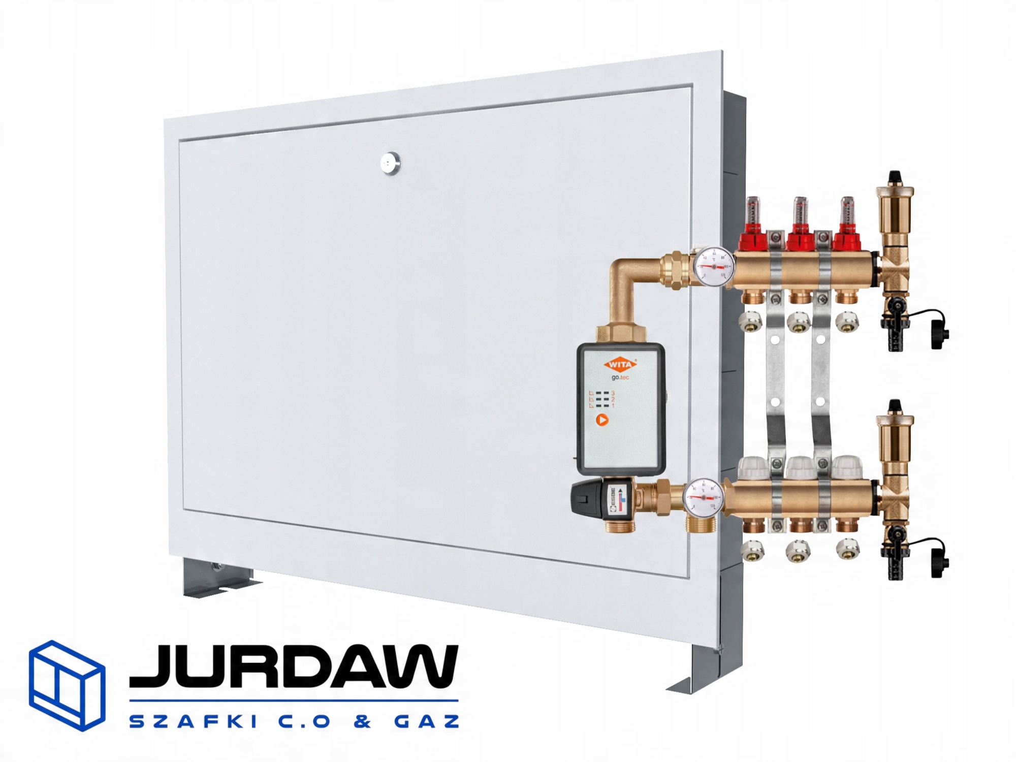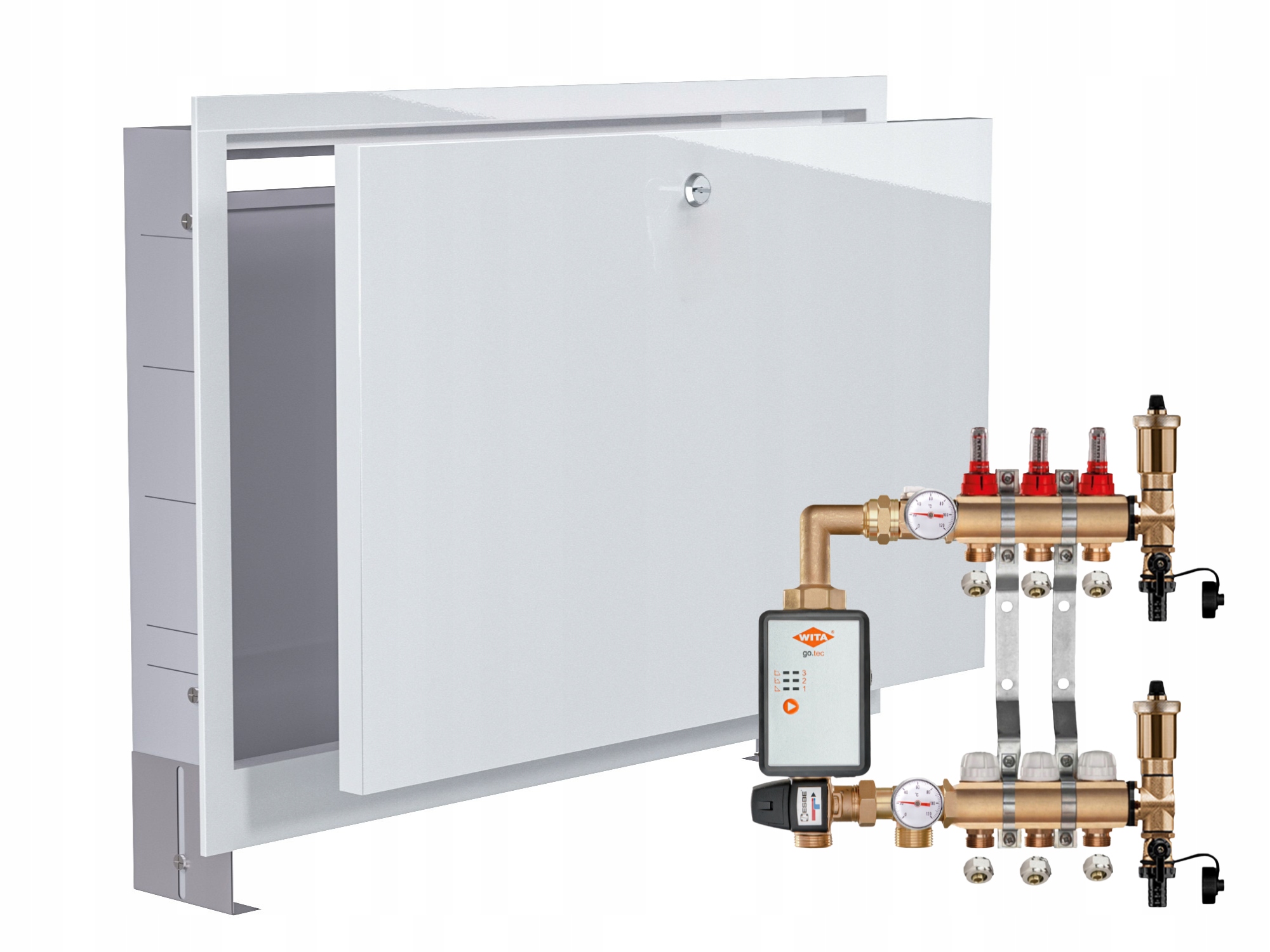 KOMPLETNY ROZDZIELACZ MOSIĘŻNY 3 SEKCJE Z GRUPĄ POMPOWĄ WITA GO.TEC 60 + ZŁĄCZKI PEX + SKRZYNKA PODTYNKOWA - POLSKI PRODUCENT