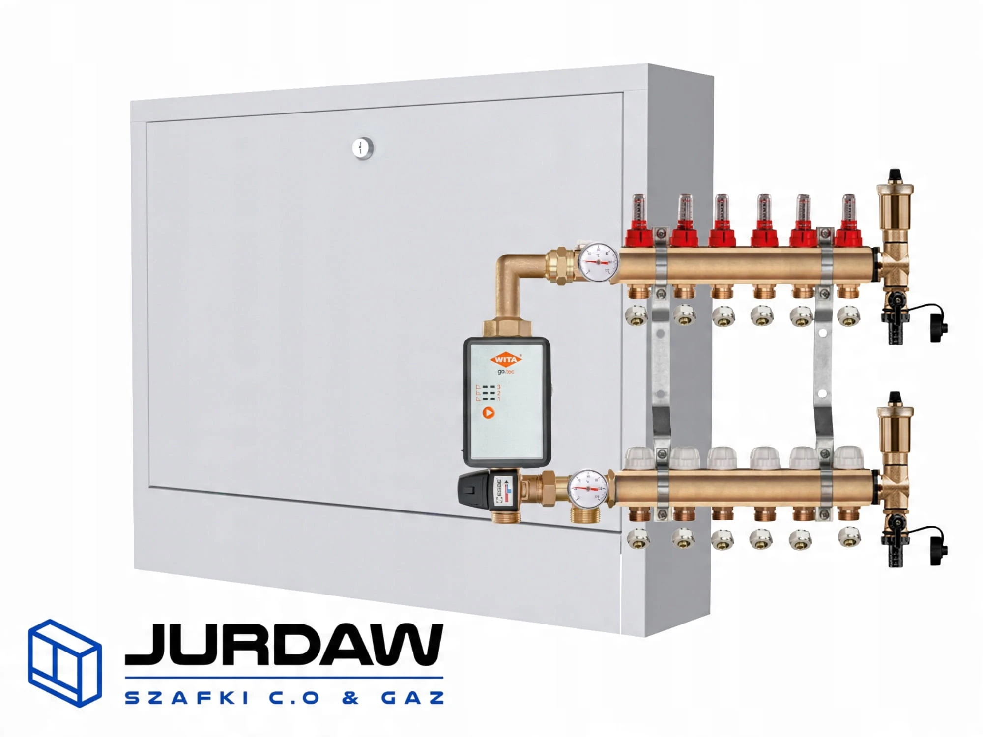 KOMPLETNY ROZDZIELACZ MOSIĘŻNY 6 SEKCJE Z GRUPĄ POMPOWĄ WITA GO.TEC 60 + ZŁĄCZKI PEX + SKRZYNKA PODTYNKOWA - POLSKI PRODUCENT