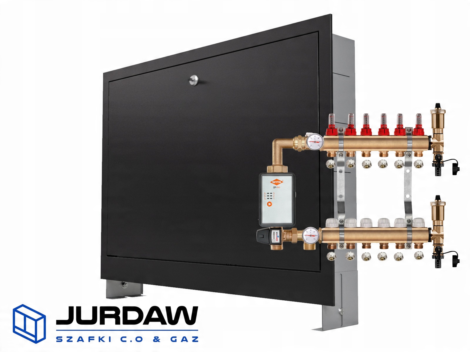 KOMPLETNY ROZDZIELACZ MOSIĘŻNY 7 SEKCJE Z GRUPĄ POMPOWĄ WITA GO.TEC 60 + ZŁĄCZKI PEX + SKRZYNKA PODTYNKOWA CZARNA - POLSKI PRODUCENT