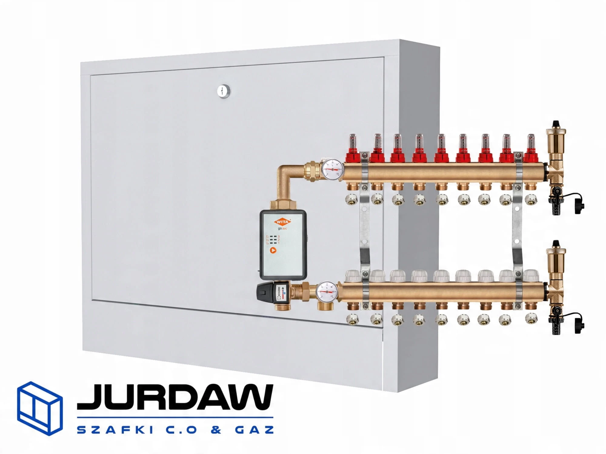 KOMPLETNY ROZDZIELACZ MOSIĘŻNY 9 SEKCJE Z GRUPĄ POMPOWĄ WITA GO.TEC 60 + ZŁĄCZKI PEX + SKRZYNKA PODTYNKOWA - POLSKI PRODUCENT