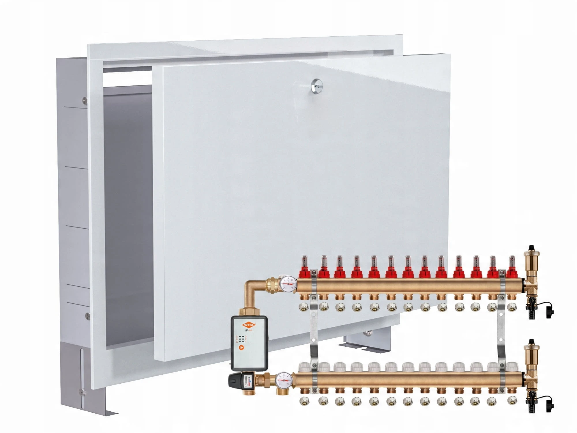 KOMPLETNY ROZDZIELACZ MOSIĘŻNY 13 SEKCJE Z GRUPĄ POMPOWĄ WITA GO.TEC 60 + ZŁĄCZKI PEX + SKRZYNKA PODTYNKOWA - POLSKI PRODUCENT