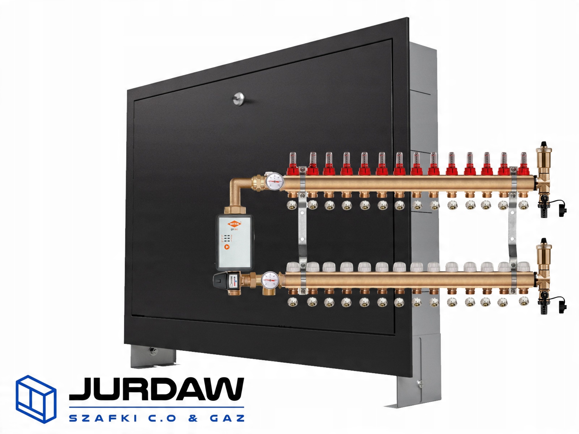 KOMPLETNY ROZDZIELACZ MOSIĘŻNY 14 SEKCJE Z GRUPĄ POMPOWĄ WITA GO.TEC 60 + ZŁĄCZKI PEX + SKRZYNKA PODTYNKOWA CZARNA - POLSKI PRODUCENT