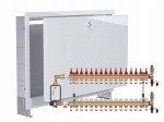 - Posiada szyny montażowe regulowane na całej szerokości szafki na uchwyty do rozdzielaczy