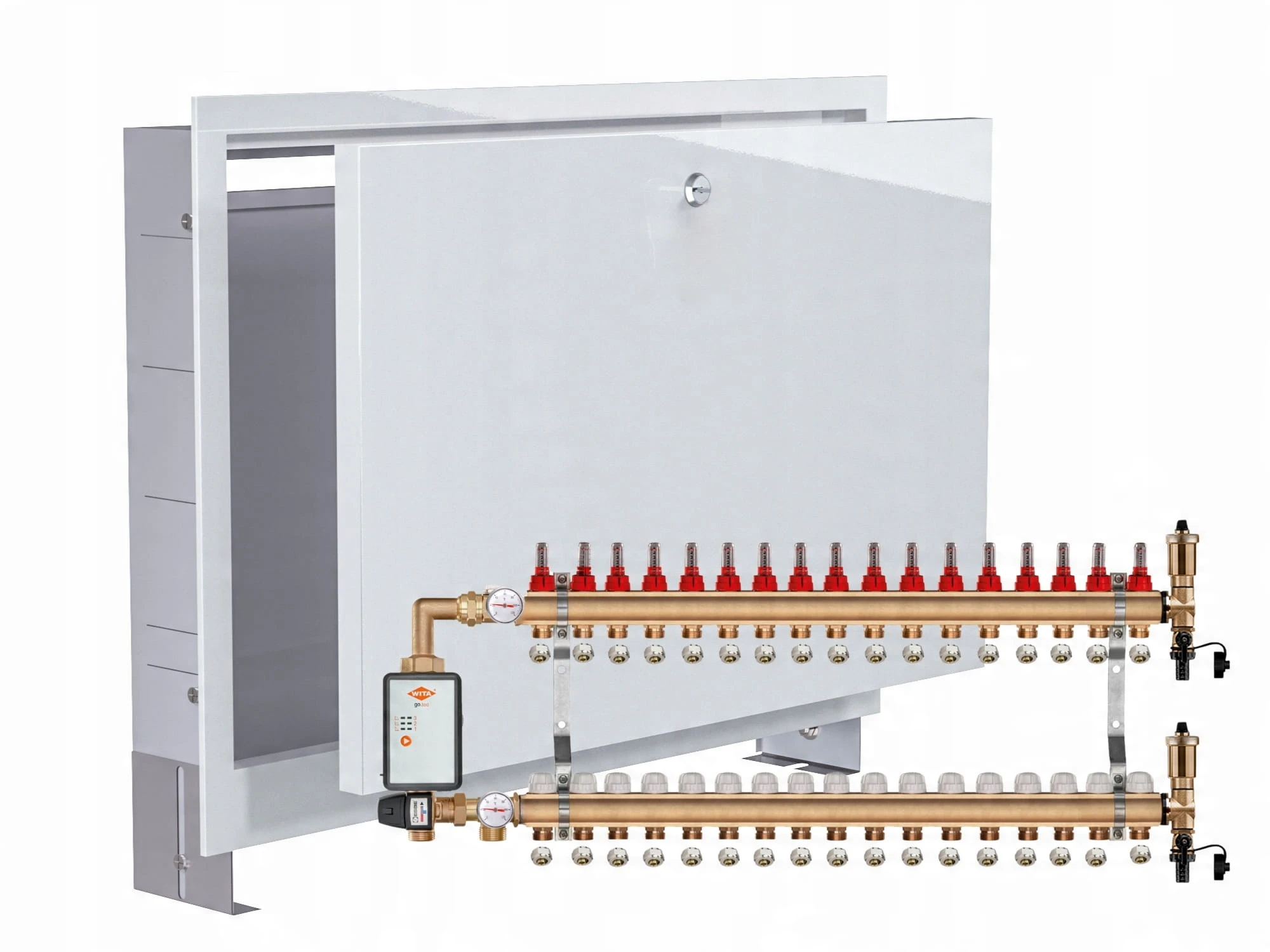 KOMPLETNY ROZDZIELACZ MOSIĘŻNY 17 SEKCJE Z GRUPĄ POMPOWĄ WITA GO.TEC 60 + ZŁĄCZKI PEX + SKRZYNKA PODTYNKOWA - POLSKI PRODUCENT