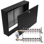 - Kompaktowe wymiary – rozdzielacz i szafka mają praktyczne wymiary, co ułatwia dopasowanie ich do różnych przestrzeni i instalacji.