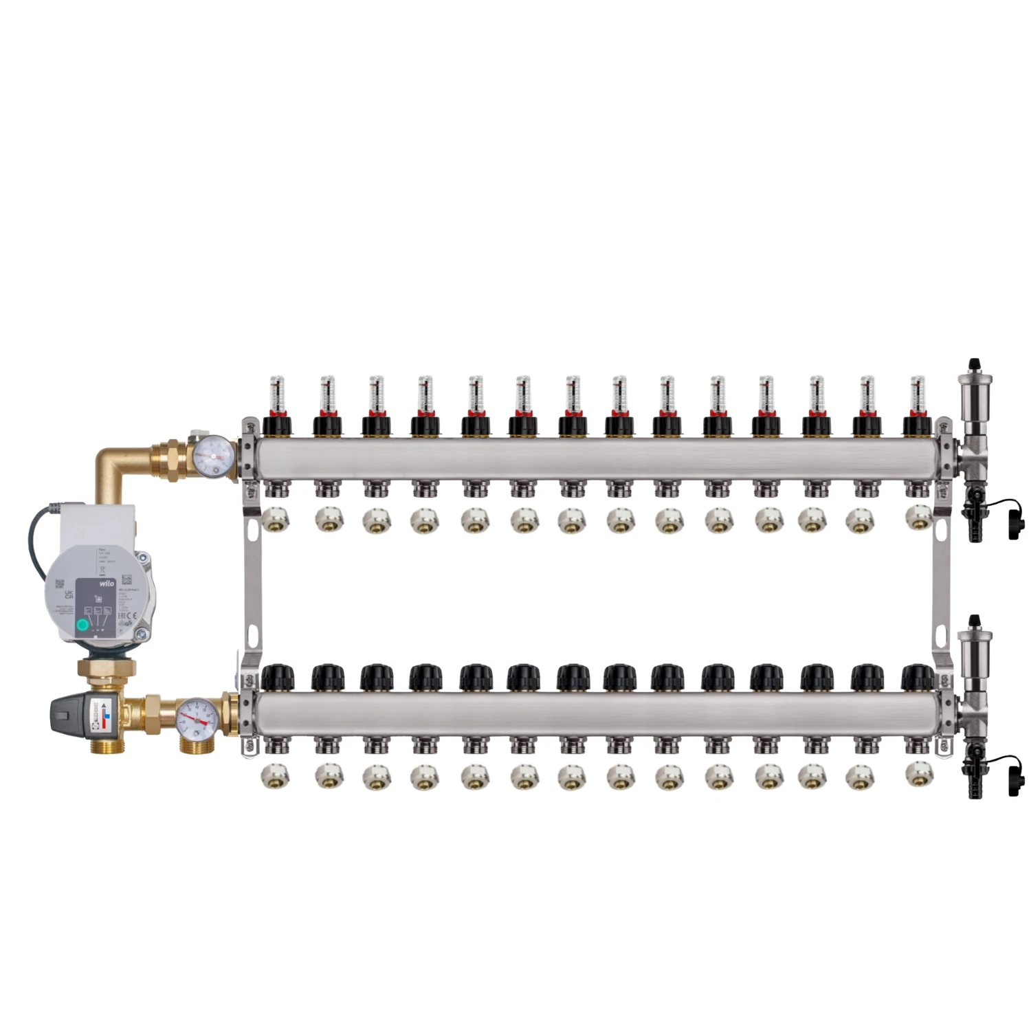 KOMPLETNY ZESTAW ROZDZIELACZ NIERDZEWNY DO PODŁOGÓWKI 14 z GRUPĄ POMPOWĄ WILO + ZŁĄCZKI PEX