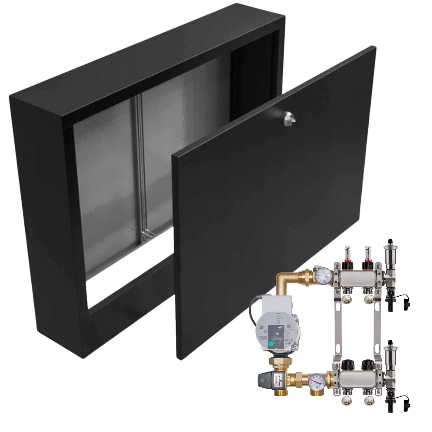 ROZDZIELACZ NIERDZEWNY DO PODŁOGÓWKI 2 Z POMPĄ WILO+SKRZYNKA NATYNKOWA+PEX