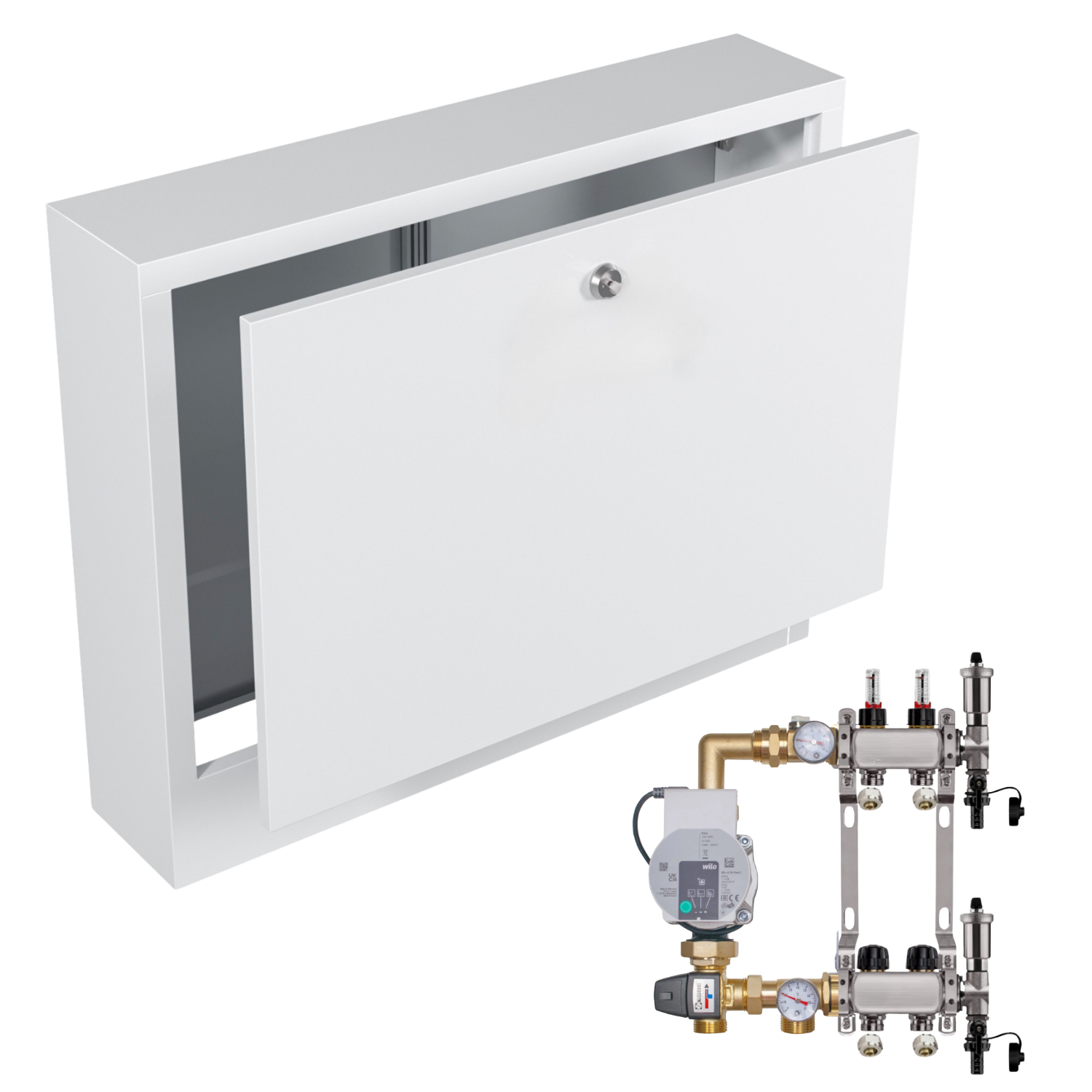 ROZDZIELACZ NIERDZEWNY DO PODŁOGÓWKI 2 Z POMPĄ WILO+SKRZYNKA NATYNKOWA+PEX