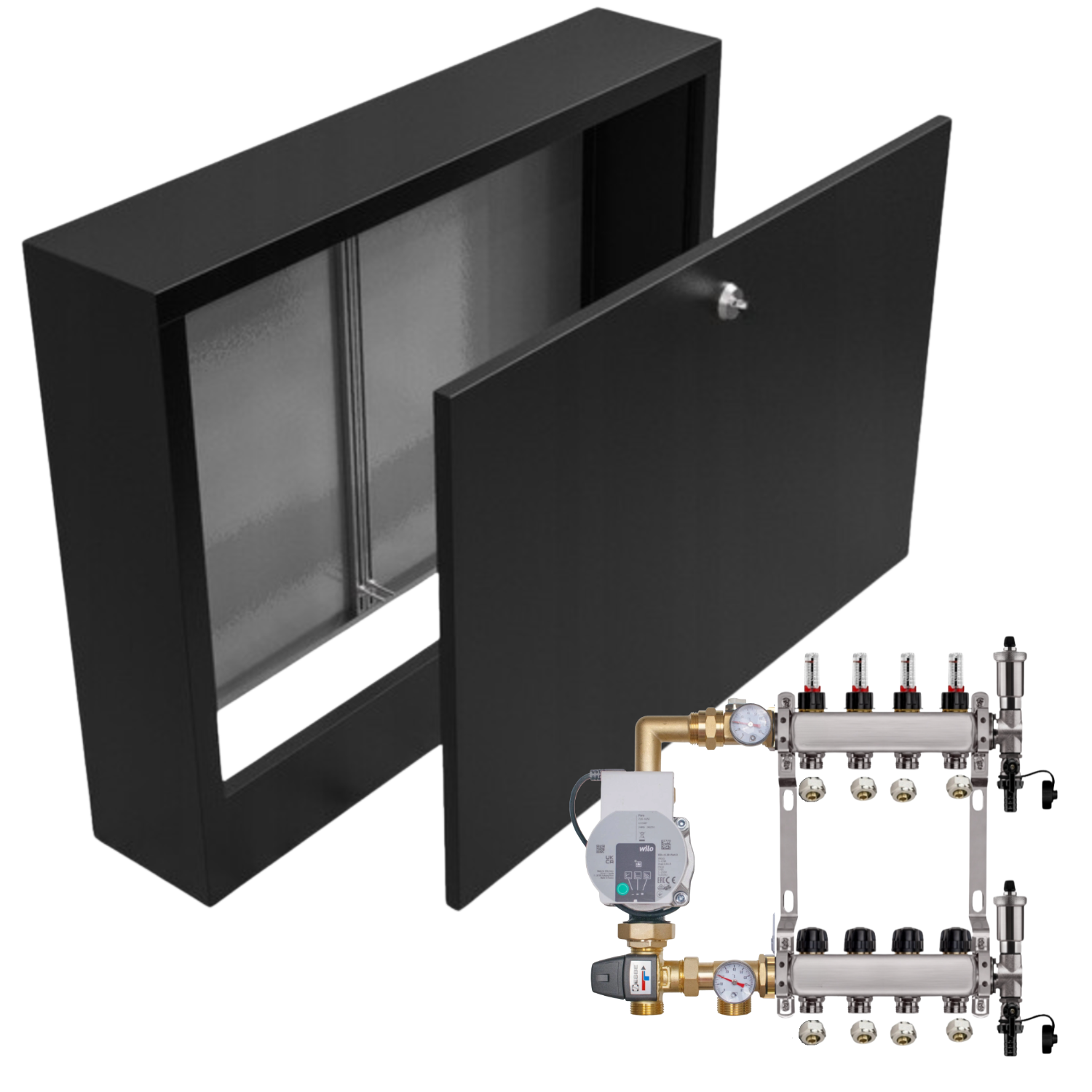 ROZDZIELACZ NIERDZEWNY DO PODŁOGÓWKI 4 Z POMPĄ WILO+SKRZYNKA NATYNKOWA+PEX