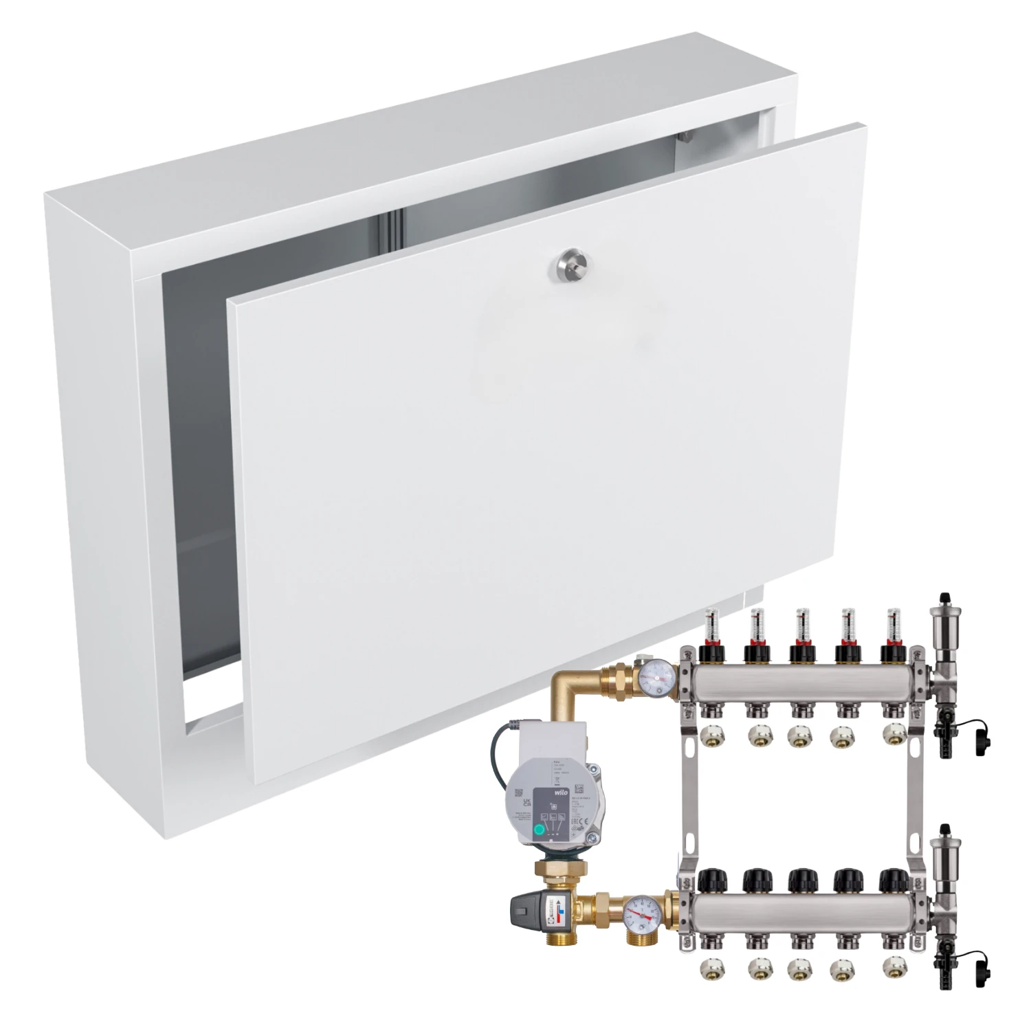 ROZDZIELACZ NIERDZEWNY DO PODŁOGÓWKI 5 Z POMPĄ WILO+SKRZYNKA NATYNKOWA+PEX
