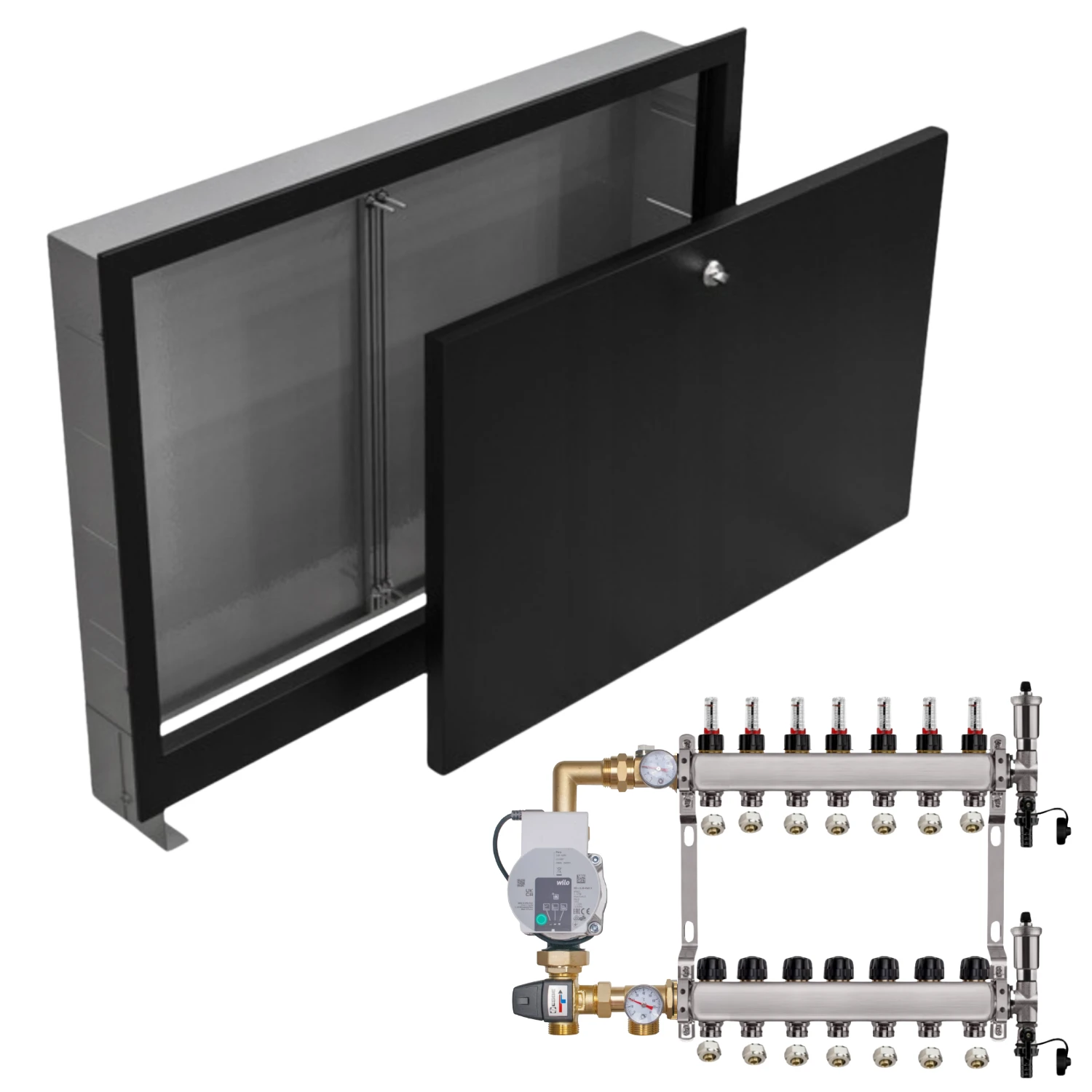 KOMPLETNY ZESTAW ROZDZIELACZ NIERDZEWNY DO PODŁOGÓWKI 7 z GRUPĄ POMPOWĄ WILO + SKRZYNKA PODTYNKOWA + ZŁĄCZKI PEX