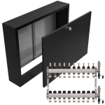 - Kompaktowe wymiary – rozdzielacz i szafka mają praktyczne wymiary, co ułatwia dopasowanie ich do różnych przestrzeni i instalacji.