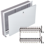 - Kompaktowe wymiary – rozdzielacz i szafka mają praktyczne wymiary, co ułatwia dopasowanie ich do różnych przestrzeni i instalacji.