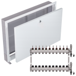 - Kompaktowe wymiary – rozdzielacz i szafka mają praktyczne wymiary, co ułatwia dopasowanie ich do różnych przestrzeni i instalacji.