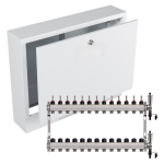 - Kompaktowe wymiary – rozdzielacz i szafka mają praktyczne wymiary, co ułatwia dopasowanie ich do różnych przestrzeni i instalacji.