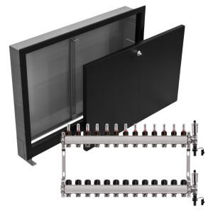 - Kompaktowe wymiary – rozdzielacz i szafka mają praktyczne wymiary, co ułatwia dopasowanie ich do różnych przestrzeni i instalacji.