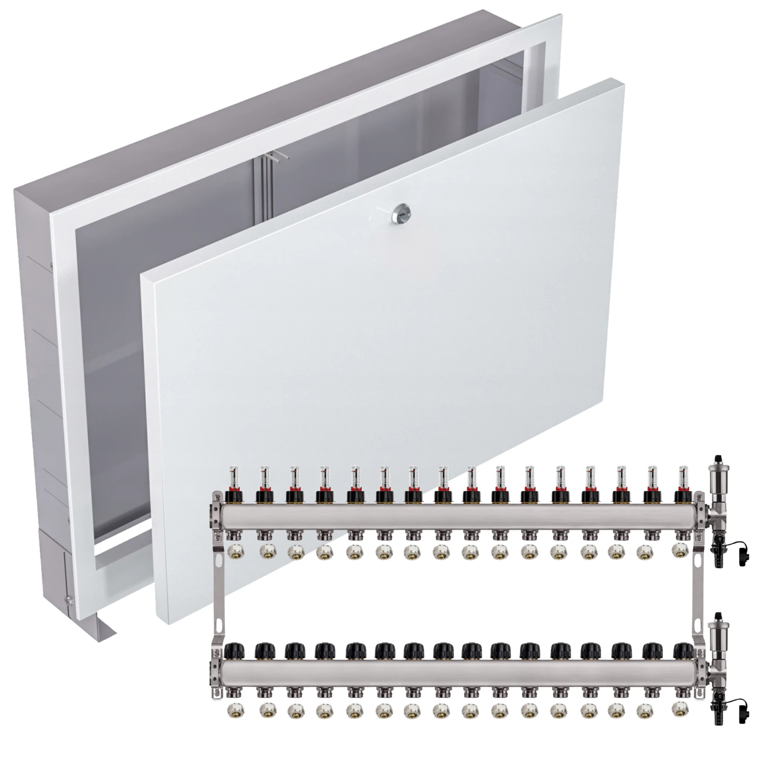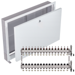 - Kompaktowe wymiary – rozdzielacz i szafka mają praktyczne wymiary, co ułatwia dopasowanie ich do różnych przestrzeni i instalacji.