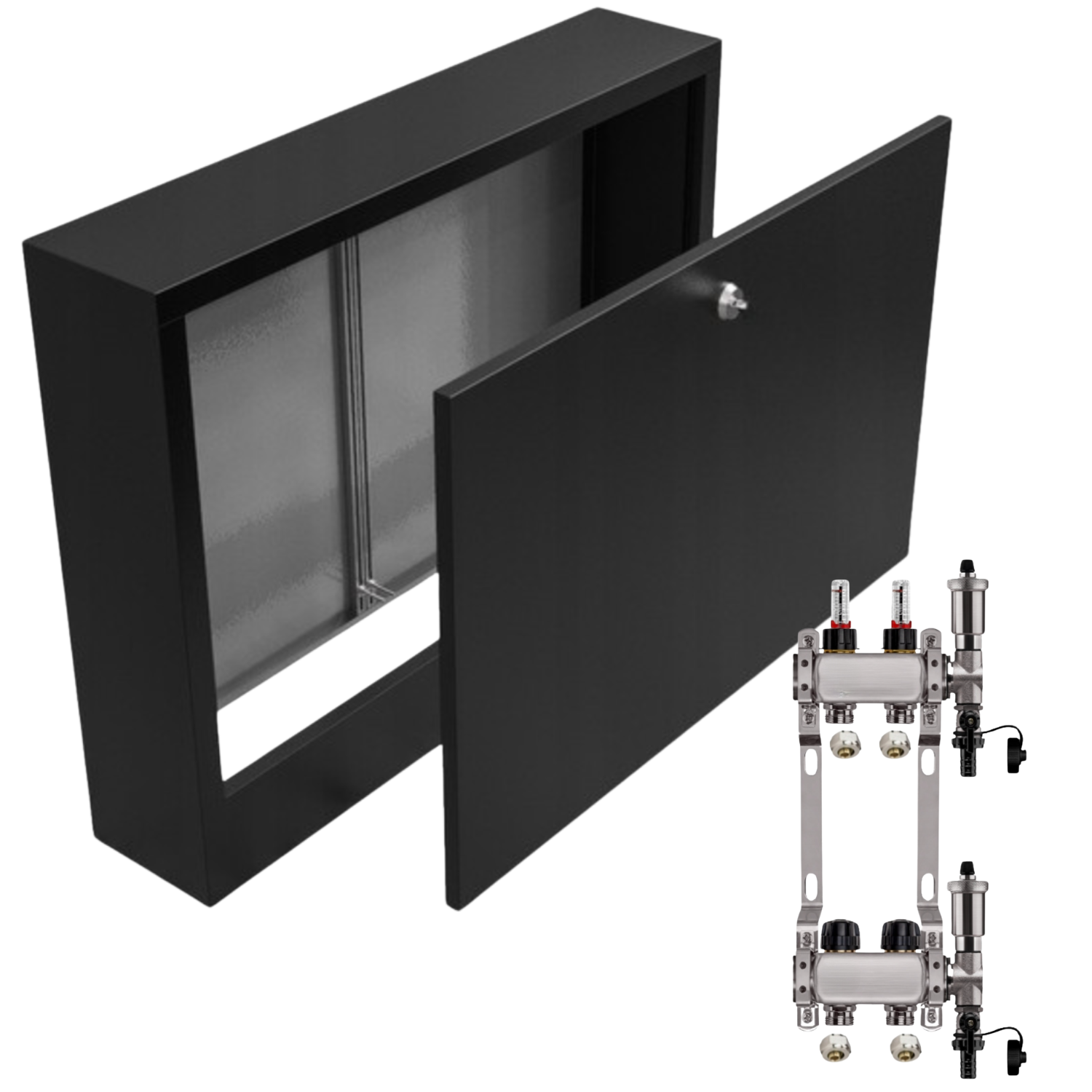 ROZDZIELACZ NIERDZEWNY PODŁOGÓWKI 2+ SKRZYNKA NATYNKOWA CZARNA+PEX
