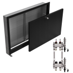 - Kompaktowe wymiary – rozdzielacz i szafka mają praktyczne wymiary, co ułatwia dopasowanie ich do różnych przestrzeni i instalacji.