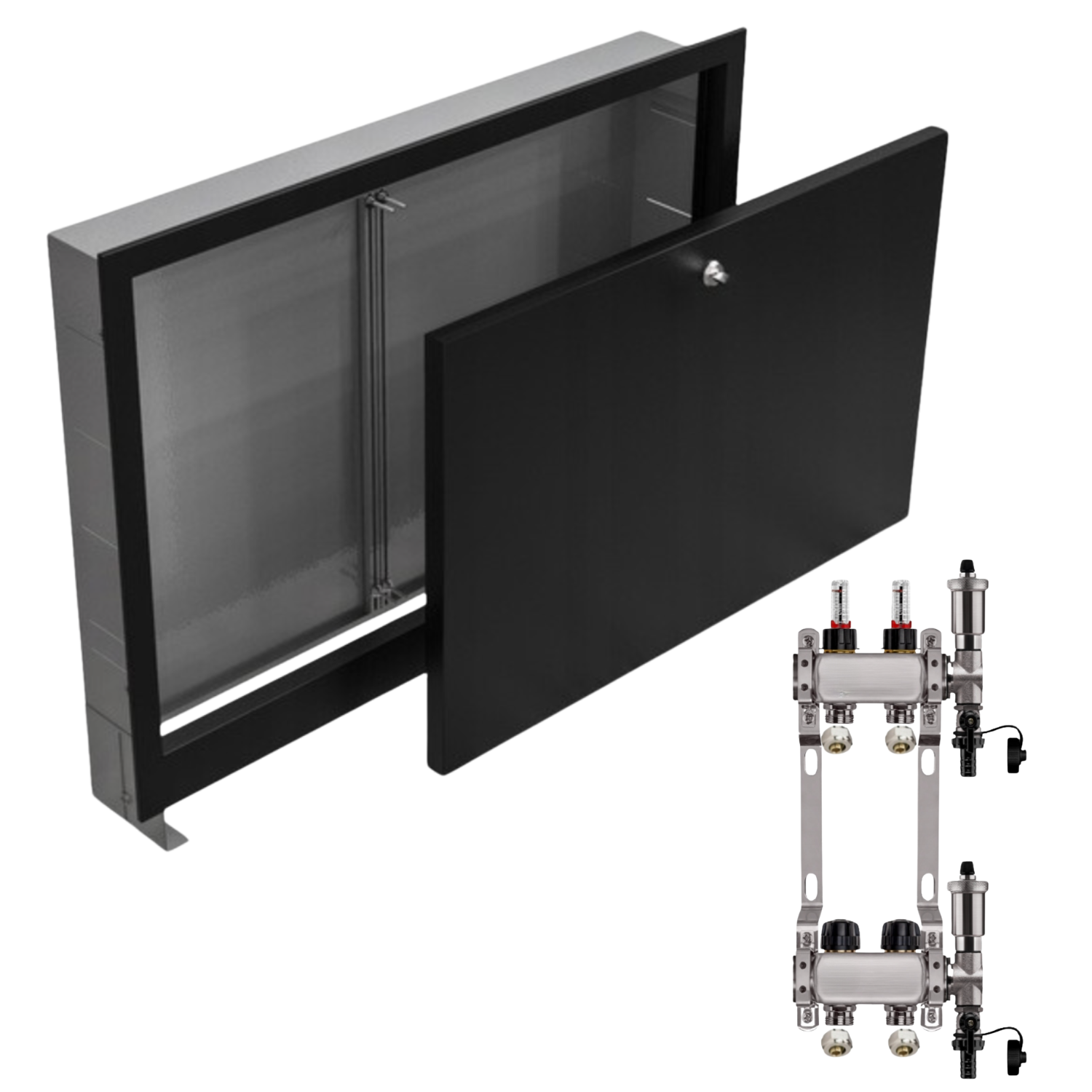 ROZDZIELACZ NIERDZEWNY PODŁOGÓWKI 2+ SKRZYNKA PODTYNKOWA CZARNA+PEX