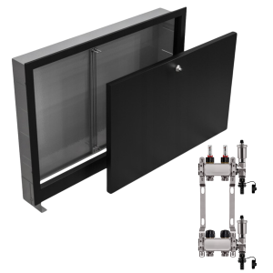 - Kompaktowe wymiary – rozdzielacz i szafka mają praktyczne wymiary, co ułatwia dopasowanie ich do różnych przestrzeni i instalacji.