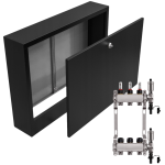 - Kompaktowe wymiary – rozdzielacz i szafka mają praktyczne wymiary, co ułatwia dopasowanie ich do różnych przestrzeni i instalacji.