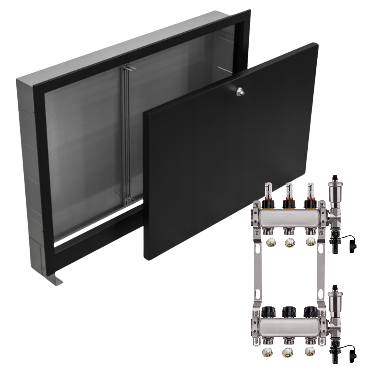 ROZDZIELACZ NIERDZEWNY PODŁOGÓWKI 3+ SKRZYNKA PODTYNKOWA CZARNA+PEX