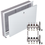 - Kompaktowe wymiary – rozdzielacz i szafka mają praktyczne wymiary, co ułatwia dopasowanie ich do różnych przestrzeni i instalacji.