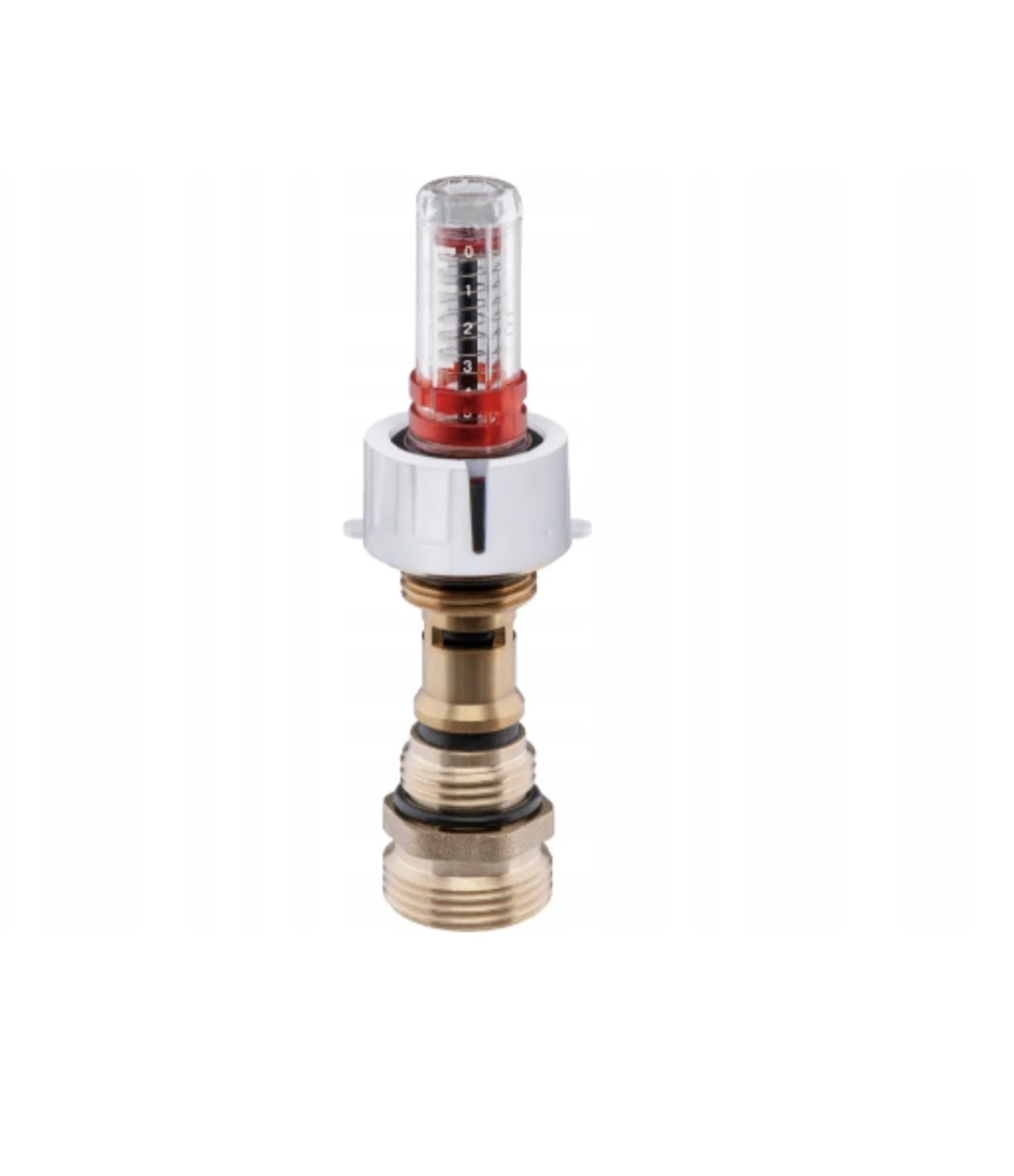 Zestaw wyposażony jest w przepływomierze (rotametry) z zaworami regulacyjnymi, które umożliwiają precyzyjną i szybką regulację przepływu dzięki skali umieszczonej na zaworze (do 5 l/min). Dodatkowo, w skład zestawu wchodzi zespół odpowietrzająco-spustowy z automatycznym odpowietrznikiem i systemem Aquastop, chroniący przed zalaniem. Zawór stopowy pozwala na łatwą wymianę i konserwację odpowietrznika bez konieczności opróżniania instalacji. Zawory termostatyczne z pokrętłami umożliwiają wyrównanie przepływu w pętlach o różnej długości oraz zrównoważenie instalacji pod względem oporów hydraulicznych. Wkładki termostatyczne są przystosowane do montażu siłowników elektrycznych M30x1,5, co pozwala na ręczną regulację przepływu lub całkowite zamknięcie wybranej pętli.
