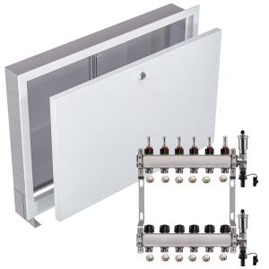 - Kompaktowe wymiary – rozdzielacz i szafka mają praktyczne wymiary, co ułatwia dopasowanie ich do różnych przestrzeni i instalacji.