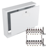 - Kompaktowe wymiary – rozdzielacz i szafka mają praktyczne wymiary, co ułatwia dopasowanie ich do różnych przestrzeni i instalacji.