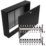 - Kompaktowe wymiary – rozdzielacz i szafka mają praktyczne wymiary, co ułatwia dopasowanie ich do różnych przestrzeni i instalacji.