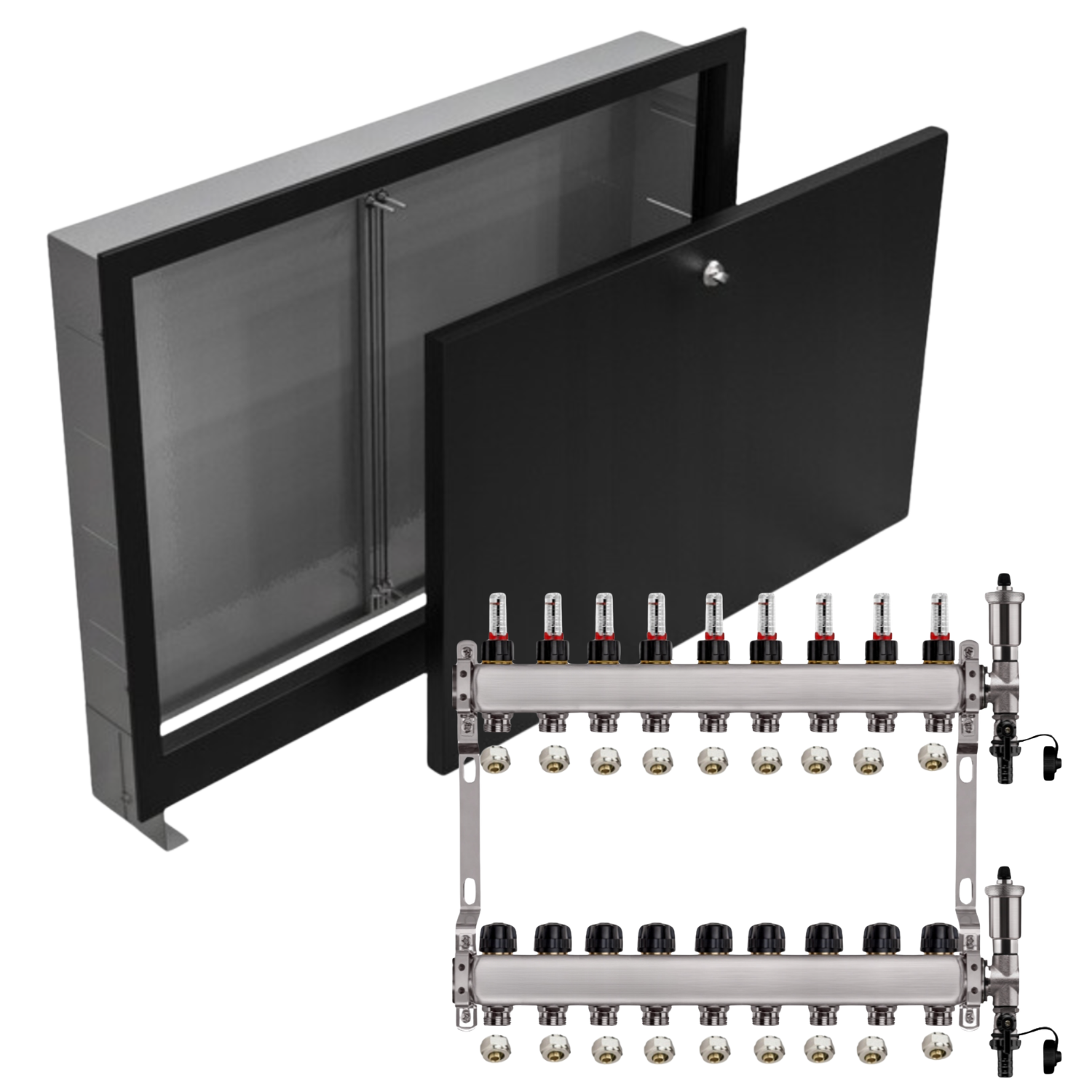 ROZDZIELACZ NIERDZEWNY PODŁOGÓWKI 9+ SKRZYNKA PODTYNKOWA CZARNA+PEX