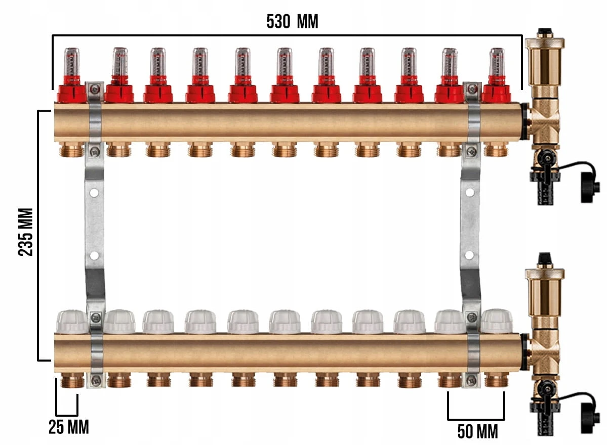 Rozdzielacz CO mosiężne do podłogówki UZBROJONY - POLSKIEGO PRODUCENTA