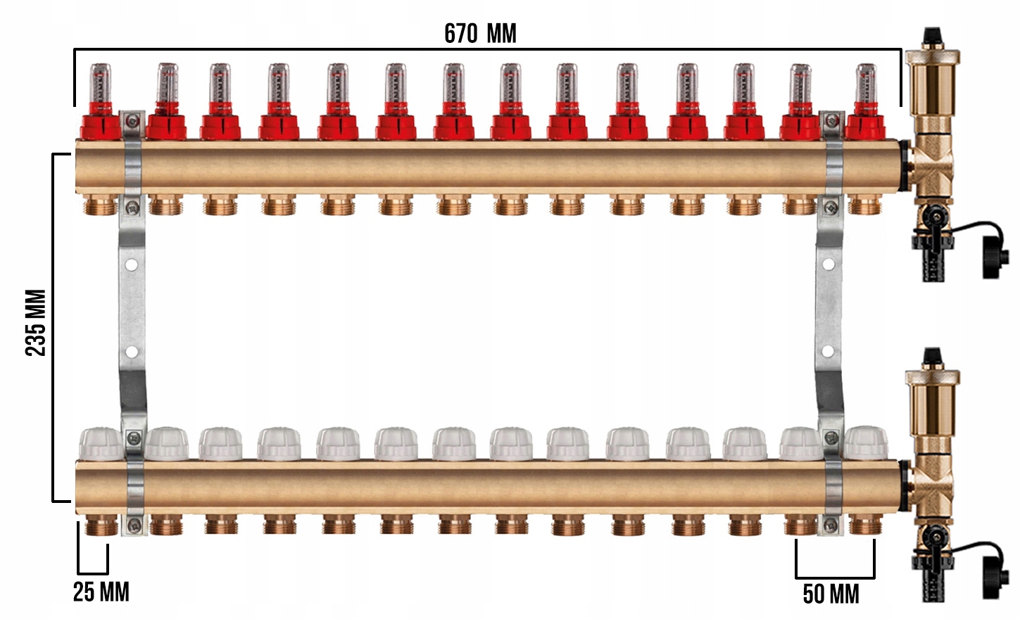 Rozdzielacz CO mosiężne do podłogówki UZBROJONY - POLSKIEGO PRODUCENTA