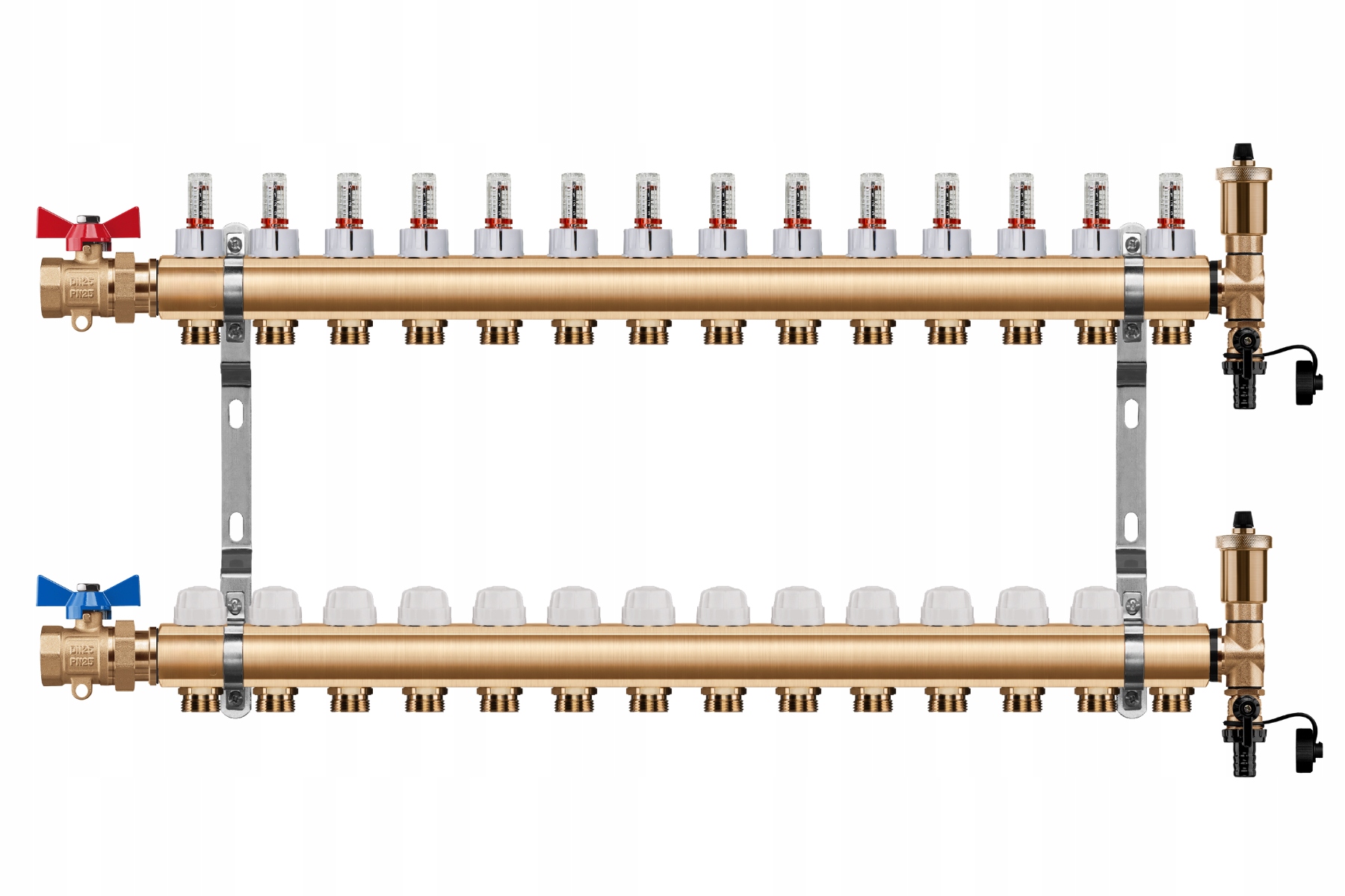 Rozdzielacz CO mosiężne do podłogówki UZBROJONY - POLSKIEGO PRODUCENTA