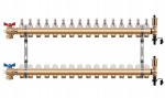 - Zawory regulacyjne z przepływomierzami na belce zasilającej umożliwiają szybką regulację przepływu dzięki zastosowanej skali na zaworze.