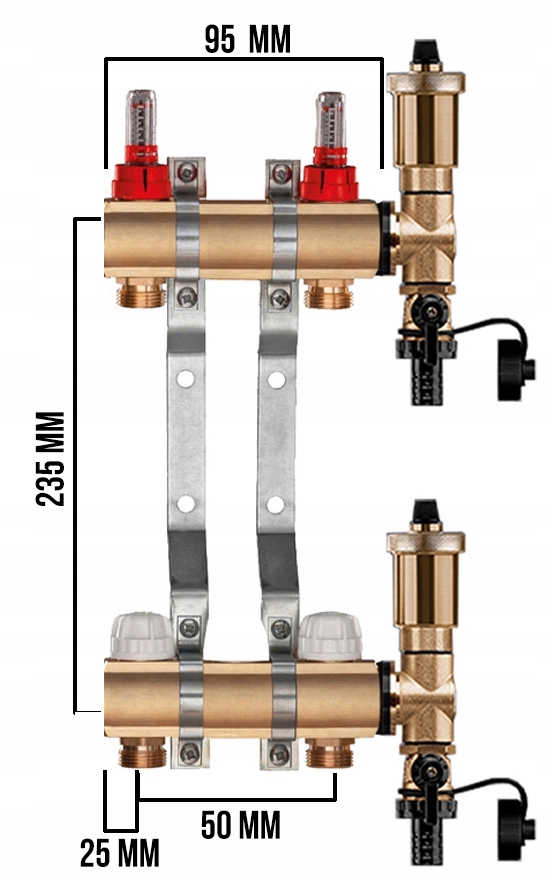 Rozdzielacz CO mosiężne do podłogówki UZBROJONY - POLSKIEGO PRODUCENTA