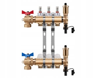 ROZDZIELACZ OGRZEWANIA PODŁOGOWEGO 3 OBWODY + ZAWOR KULOWY KĄTOWY + PEX