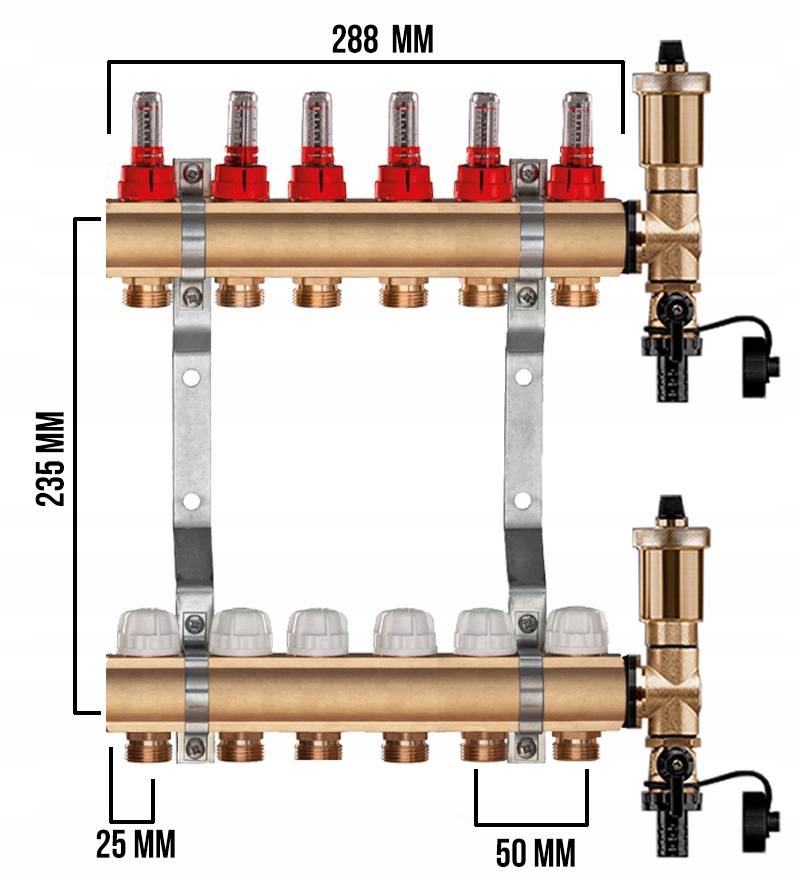 Rozdzielacz CO mosiężne do podłogówki UZBROJONY - POLSKIEGO PRODUCENTA