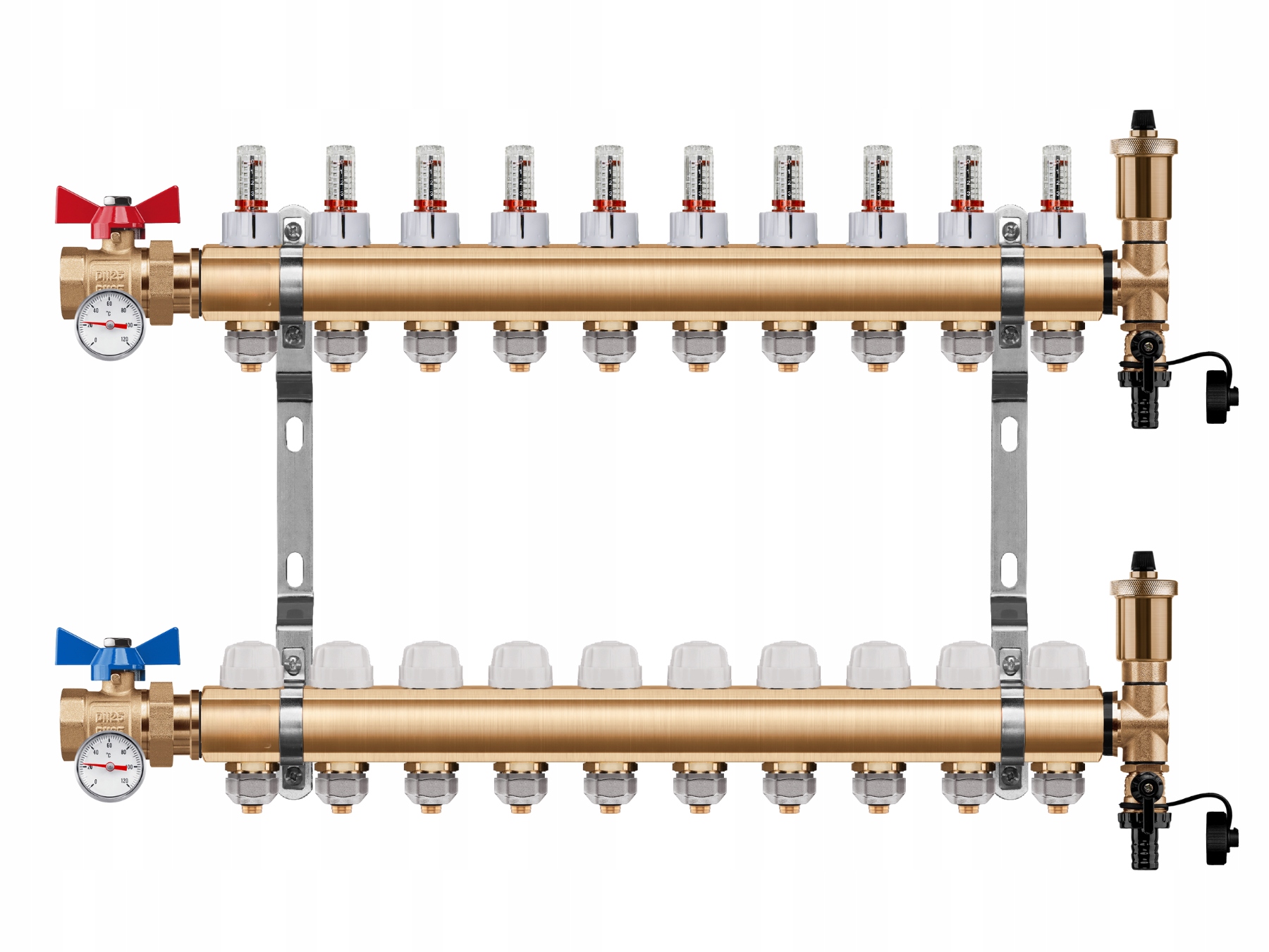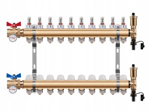 Rozdzielacz CO mosiężne do podłogówki UZBROJONY - POLSKIEGO PRODUCENTA