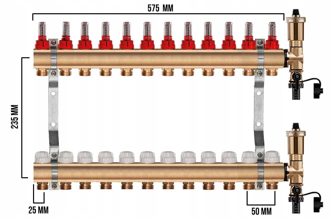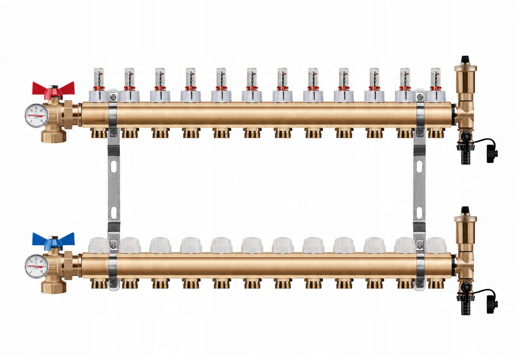 Rozdzielacz CO mosiężne do podłogówki UZBROJONY - POLSKIEGO PRODUCENTA