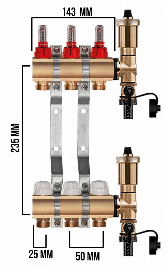 Rozdzielacz CO mosiężne do podłogówki UZBROJONY - POLSKIEGO PRODUCENTA