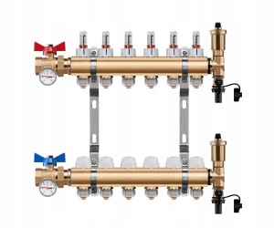 Rozdzielacz CO mosiężne do podłogówki UZBROJONY - POLSKIEGO PRODUCENTA