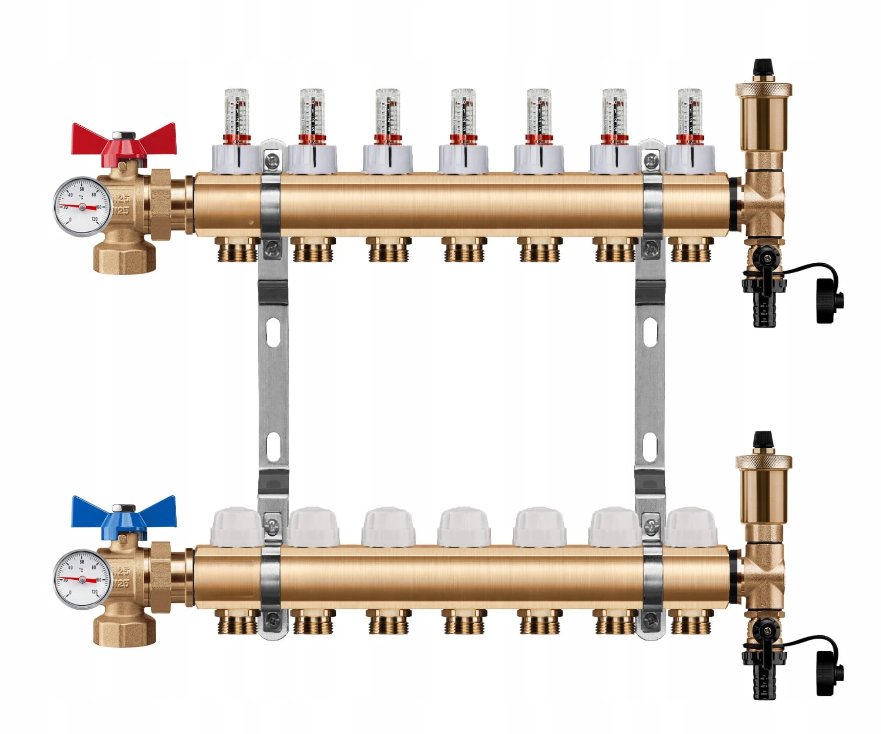 Rozdzielacz CO mosiężne do podłogówki UZBROJONY - POLSKIEGO PRODUCENTA