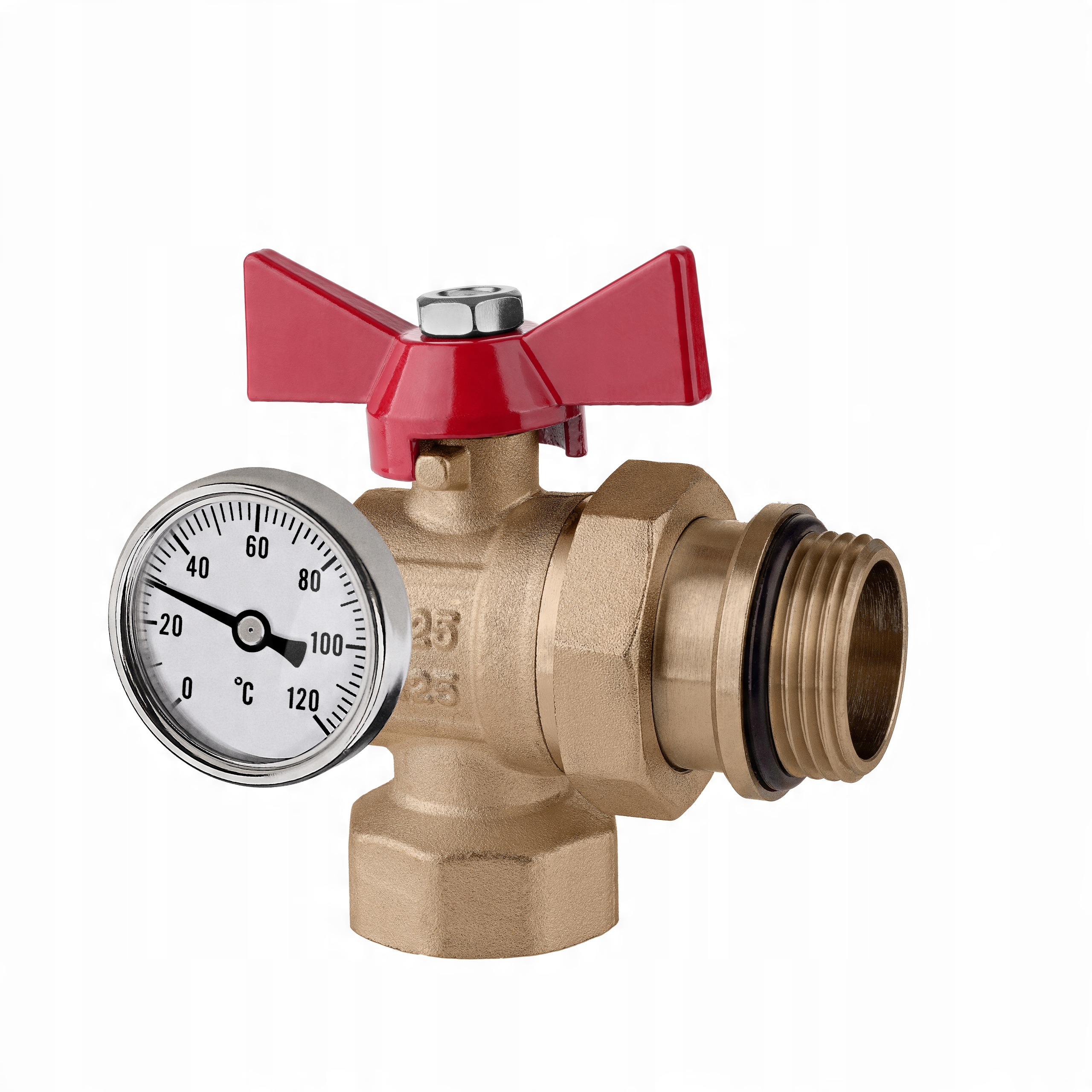 ZAWÓR KULOWY KĄTOWY ZE ŚRUBUNKIEM TERMOMETREM 1 CAL