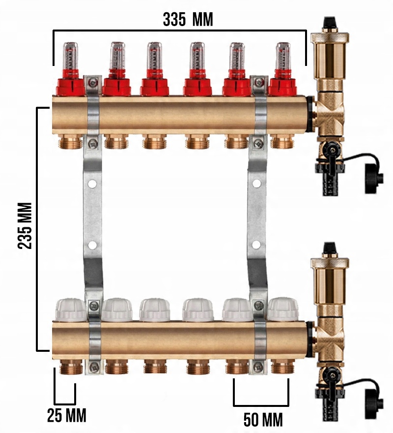 Rozdzielacz CO mosiężne do podłogówki UZBROJONY - POLSKIEGO PRODUCENTA