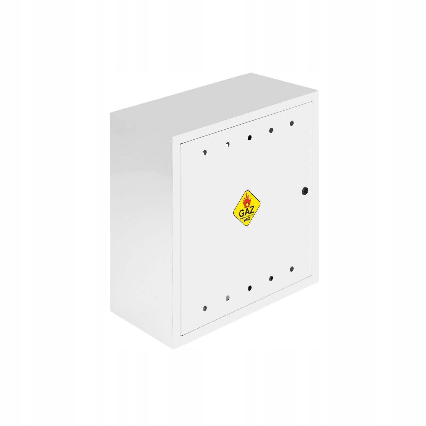 Szafka wyposażona w laminowaną naklejkę "GAZ" , co ułatwia identyfikację instalacji.